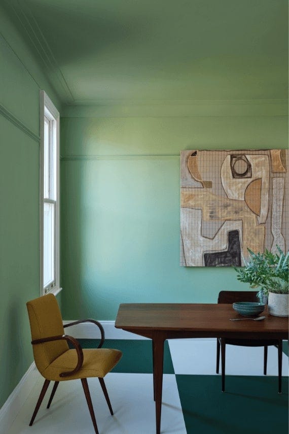 Whirlybird is a playful green inspired by the papery winged seeds beloved by many young gardeners and nature lovers. It’s an upbeat and lively shade, particularly in morning light. Pair it with Beverly and James White for a light-hearted scheme.